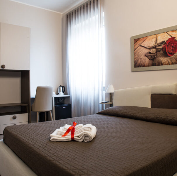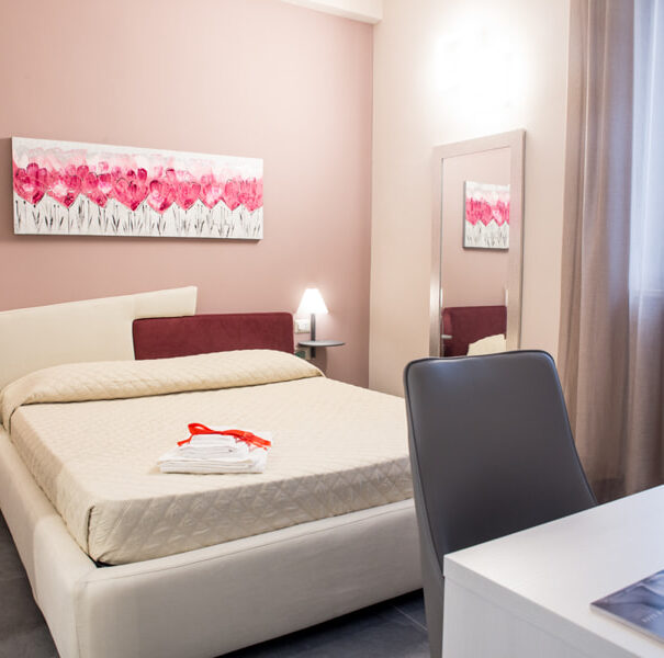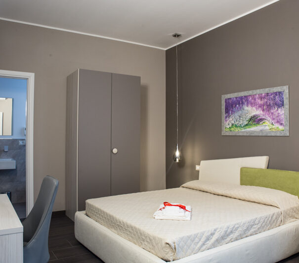 Le linee moderne scelte per l’arredamento, si sposano perfettamente con il carattere che anima questa camera con letto matrimoniale. Le forme geometriche regolari presenti nella stanza da letto Sahar, contraddistinguono anche l’ambiente bagno, razionale e pratico. Camera insonorizzata completa di … Read More